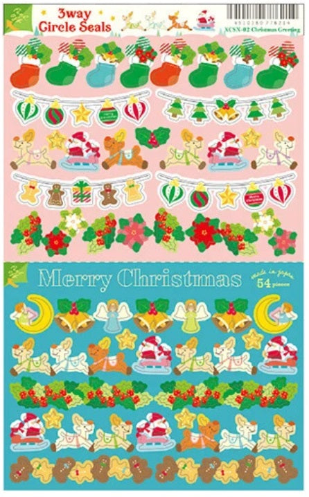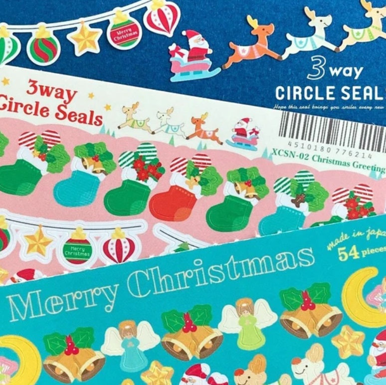 • Christmas garland, stockings, reindeer, Santa in his sleigh, bells, angels, holly and gingerbread men stickers