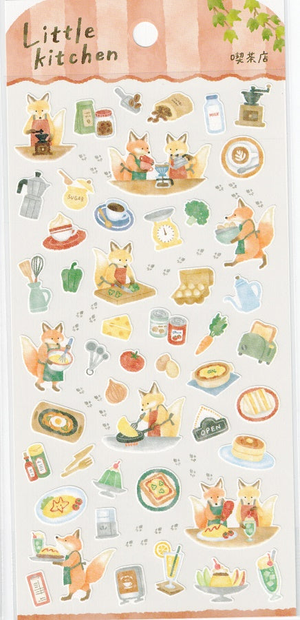 Fox is preparing breakfast in the kitchen, complete with fox faces made of ketchup on the omelette!