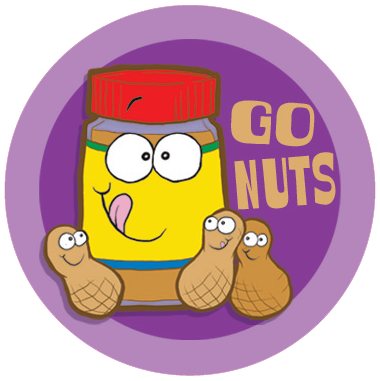 Each package of Dr. Stinky's Scratch-N-Sniff Stickers contains 26 scented stickers (2 sheets) and 1 Limited Edition Sticker (hidden in sticker pack!). Sticker sizes range from .75" round to 1.25" round plus one large 3.5" sticker. These Peanut Butter scented stickers say "GO NUTS."