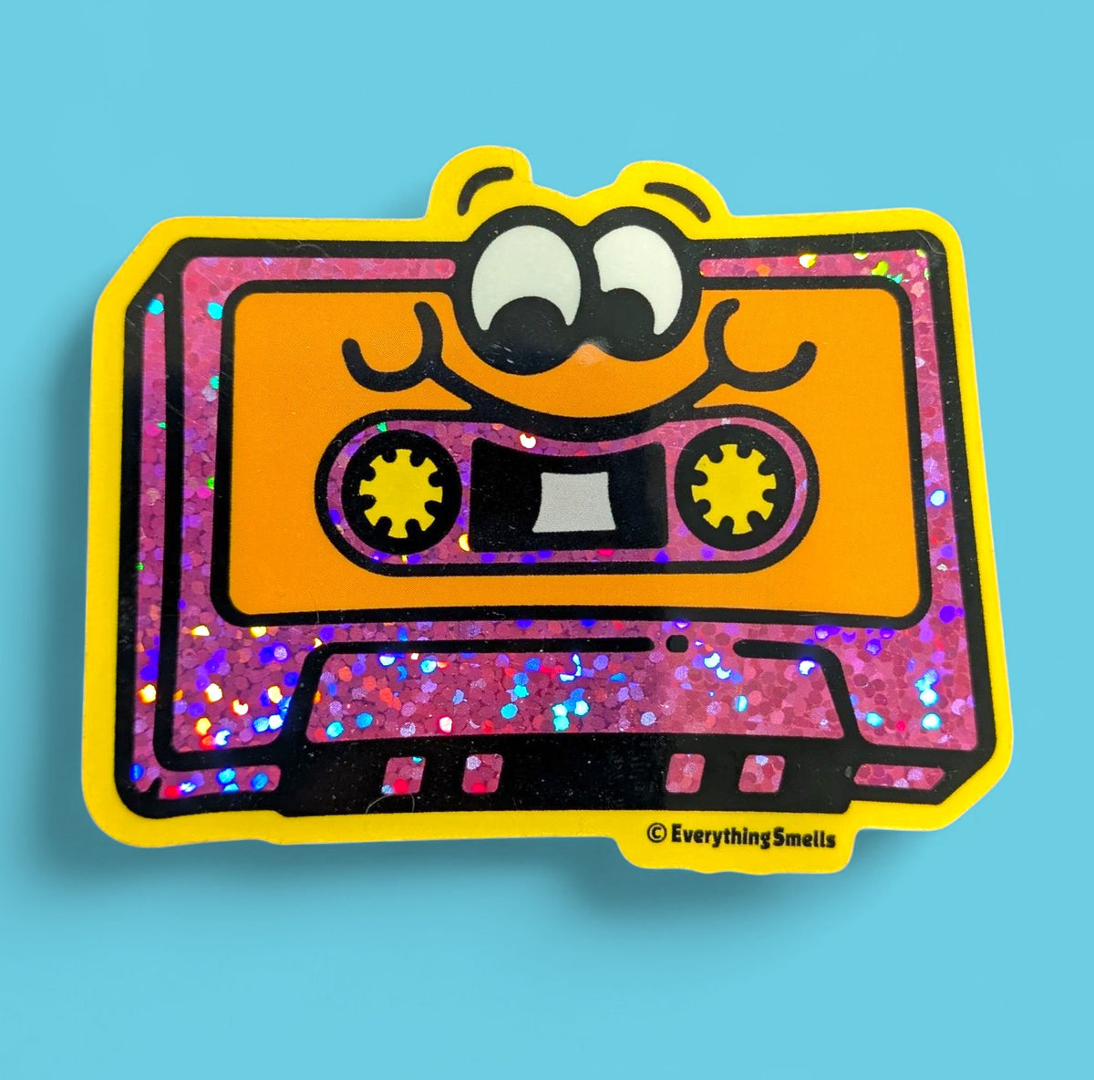 Sparkly Cassette Tape Vinyl Sticker by EverythingSmells