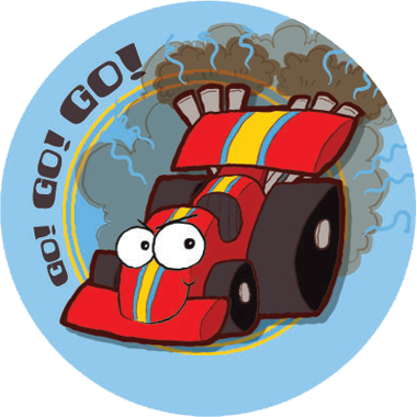 Each package of Dr. Stinky's Scratch-N-Sniff Stickers contains 26 scented stickers (2 sheets) and 1 Limited Edition Sticker (hidden in sticker pack!). Sticker sizes range from .75" round to 1.25" round plus one large 3.5" sticker. These Race Car scented stickers say "Go! Go! Go!"