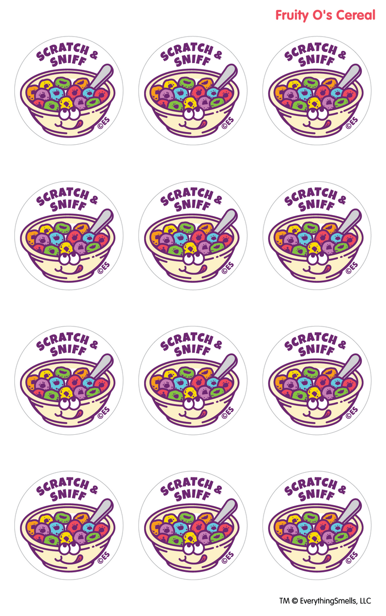 - Fruity O's Cereal scratch & sniff stickers