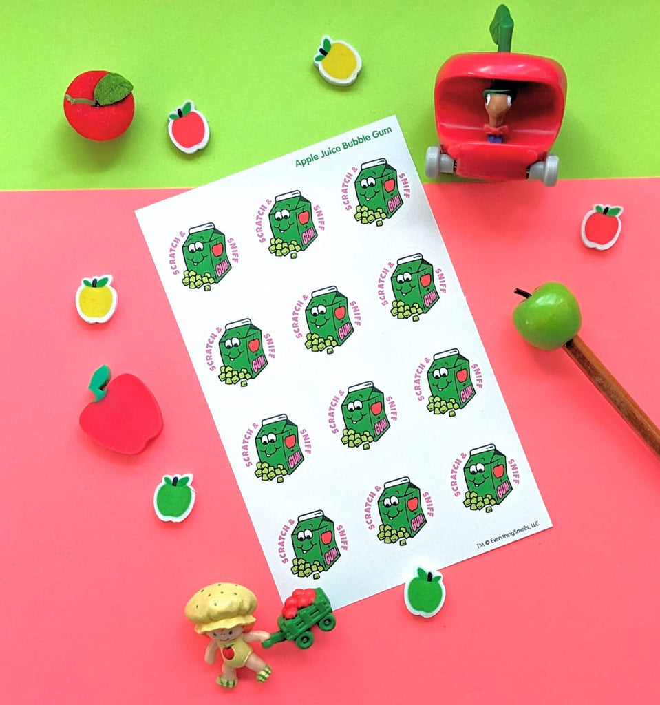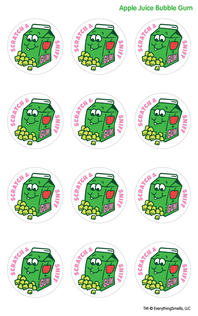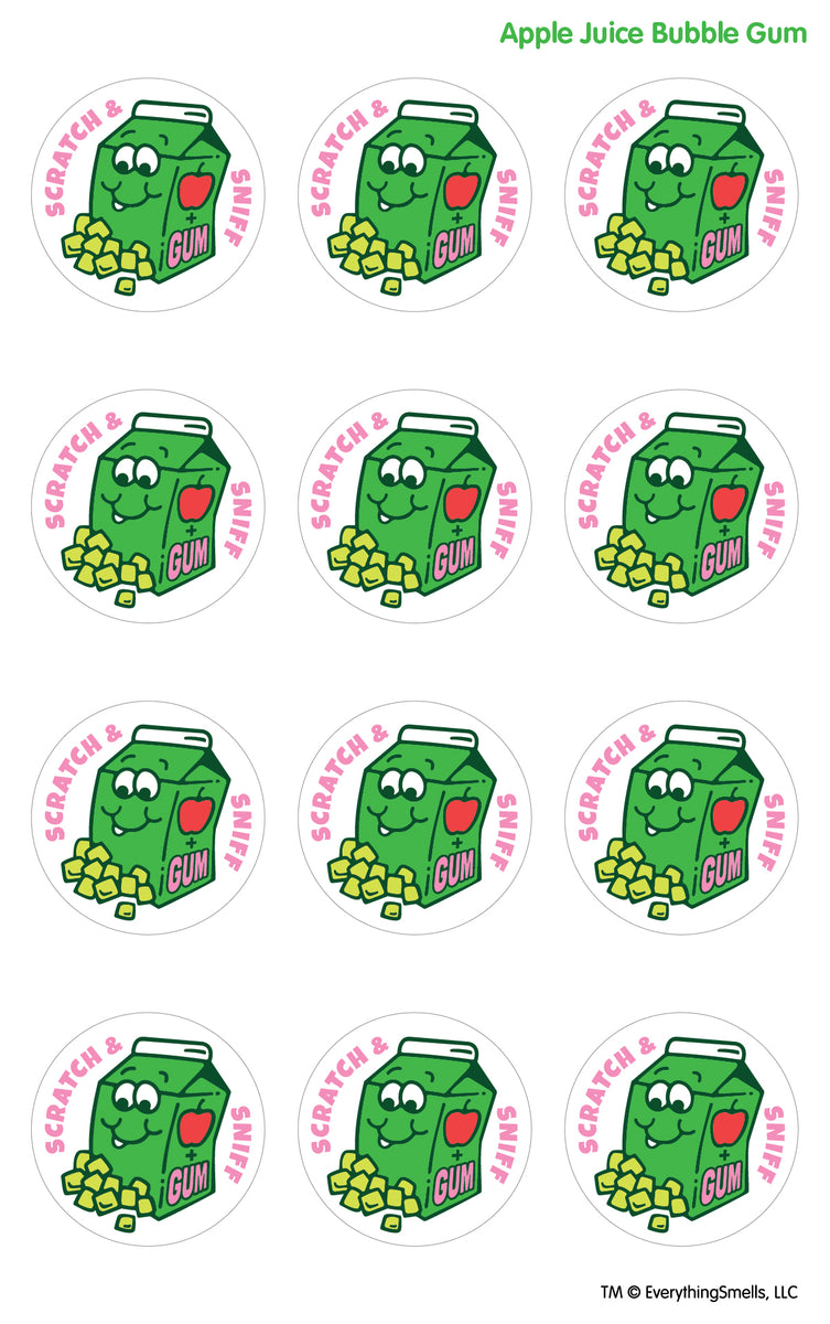 - Apple Juice Bubble Gum scratch & sniff stickers
