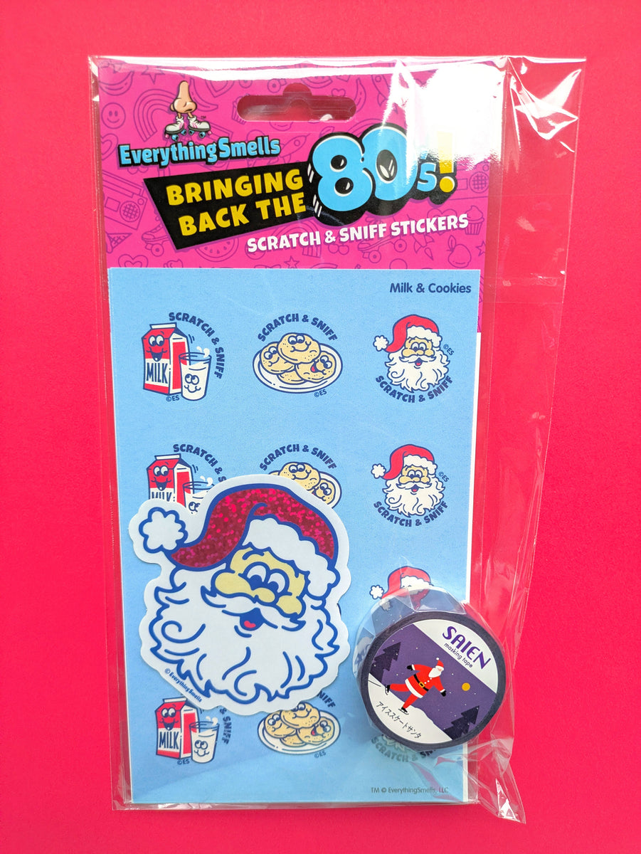 - Gift packs contain a full pack of my scratch and sniff stickers (2 sheets), matching vinyl sticker (unscented), and matching keychain or washi tape. See photos.