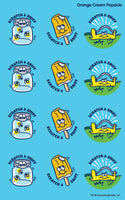 My newest designs feature 3 unique images on a sheet. More 80's bang for your buck! Images of a jar of lightning bugs, orange cream popsicle, and water sprinkler.
