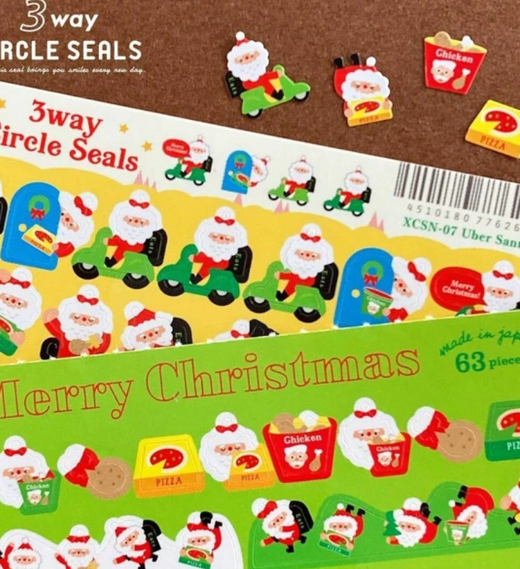 Santa doesn't have time to waste...he needs to deliver these pizzas and buckets of chicken stat! They have a light adhesive much like washi tape and will not leave a sticky residue.
