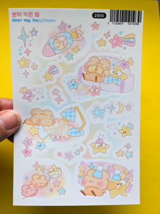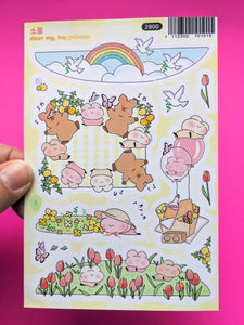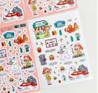 Authentic Korean stickers made by 9 O'Clock Bonnie. They are matte vinyl and feature the cutest characters - Terrier Dogs Bonnie, Barney and Tiny and their loving owner/friend Chloe!