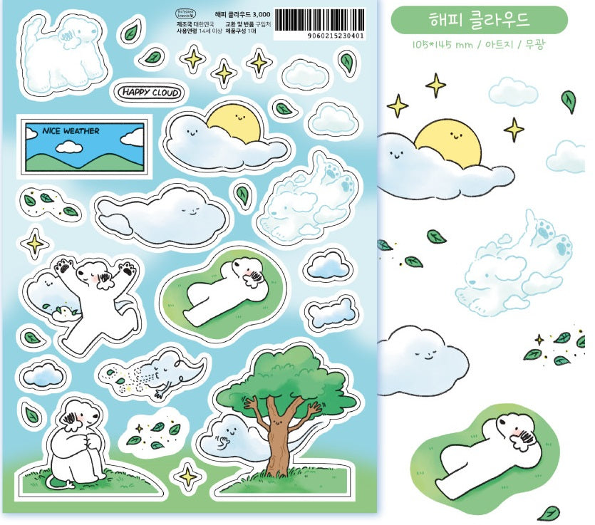 Authentic Korean stickers made by 9 O'Clock Bonnie. They are matte vinyl and feature the cutest characters - Terrier Dogs Bonnie, Barney and Tiny and their loving owner/friend Chloe!