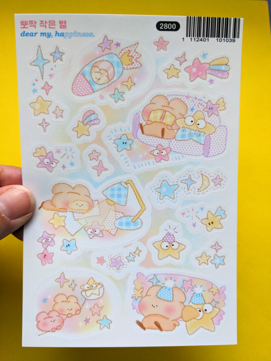 I reached out to my favorite Korean sticker designers and am delighted to offer you these authentic Korean stickers made by Dear My Happiness. They are matte vinyl and feature the sweetest characters. On this sheet we have bunny and his Star friend.