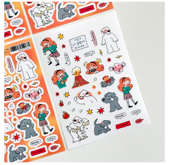 Authentic Korean stickers made by 9 O'Clock Bonnie. They are matte vinyl and feature the cutest characters - Terrier Dogs Bonnie, Barney and Tiny and their loving owner/friend Chloe!
