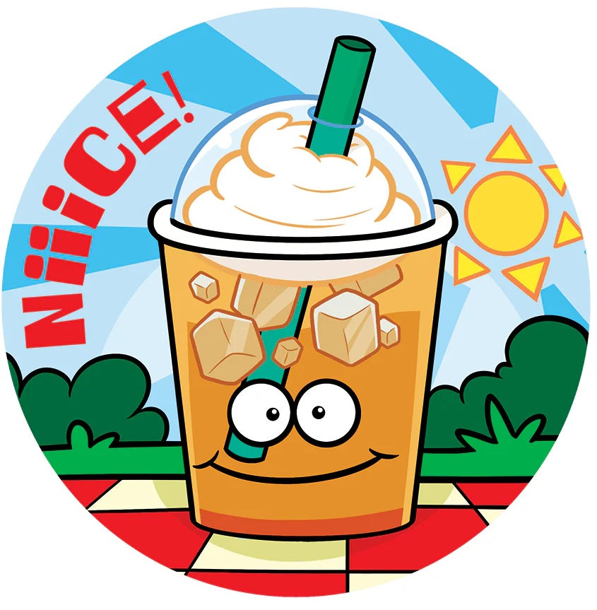 Each package of Dr. Stinky's Scratch-N-Sniff Stickers contains 26 scented stickers (2 sheets) and 1 Limited Edition Sticker (hidden in sticker pack!). Sticker sizes range from .75" round to 1.25" round plus one large 3.5" sticker. These Iced Coffee scented stickers say "Niice!"
