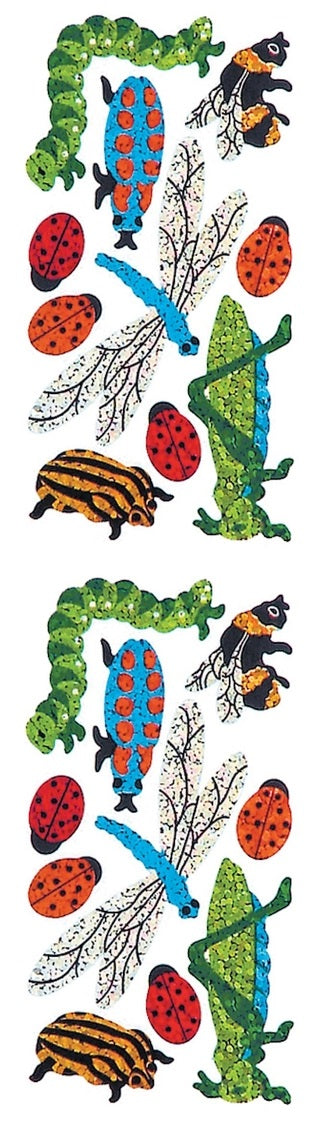 Such a classic, timeless sticker. Prismatic ladybug, bee, beetle, caterpillar, grasshopper, and dragonfly stickers.