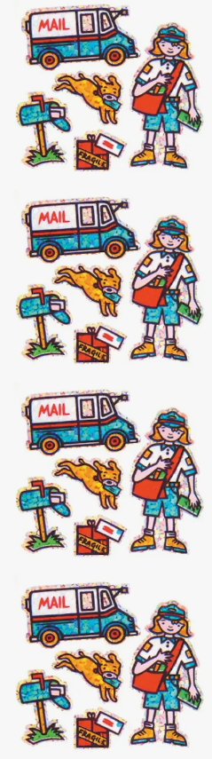 • Mail carrier, mail truck, mailbox, dog, mailbag stickers