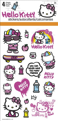 Hello Kitty in her play clothes spray painting rainbows and hearts. There are 4 sheets so you can share!