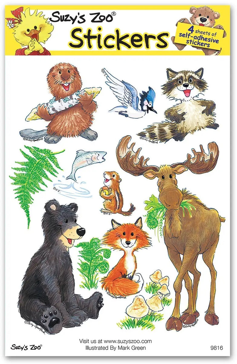These Suzy's Zoo "Woodland Creatures" multi stickers feature a mix of woodland creatures from around the Beak Isles! Happy beaver, raccoon, moose, trout, blue jay, chipmunk, fox and black bear all feature on the stickers. Each pack of stickers includes four individual sheets with a variety of stickers featuring characters and denizens from the town of Duckport. Larger than our regular sticker packs, these multi stickers are four times the size!
