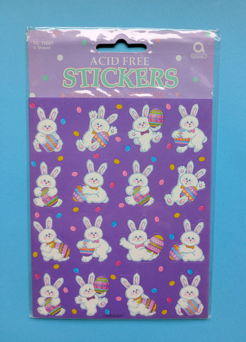 Vintage Amscan White Easter Bunny With Eggs Sticker Sheet