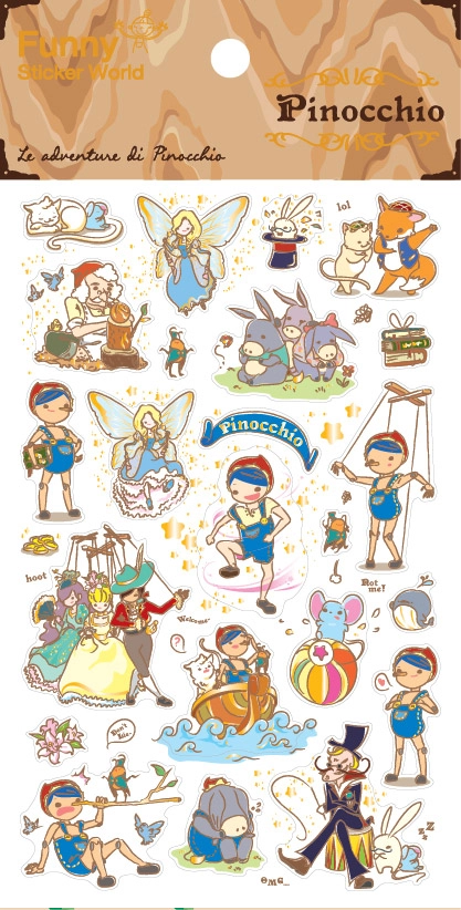 - Pinocchio vinyl stickers with clear edges