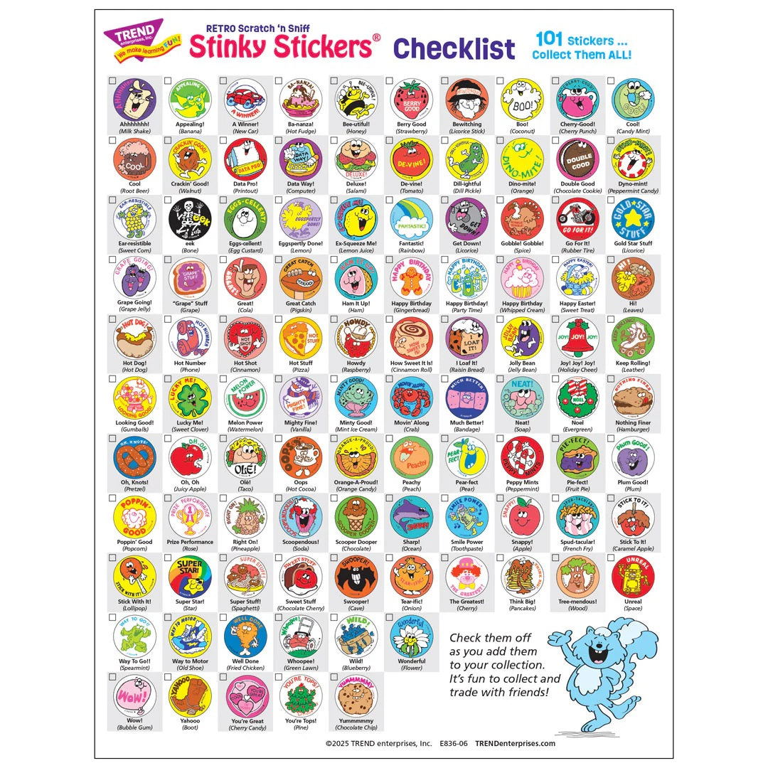 Retro Stinky Stickers Collector Checklist - Free Printable